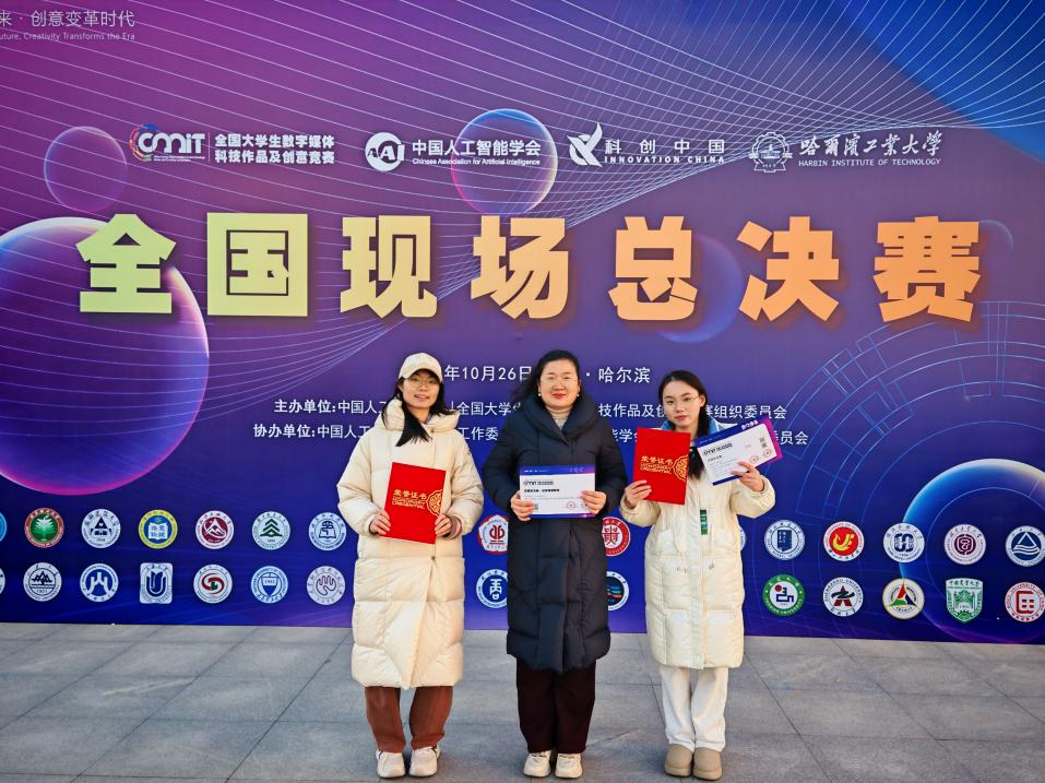 2025年10月25日,全国大学生数字媒体科技作品及创意竞赛全国现场总决赛在哈尔滨激烈展开,来自全国高校的优秀团队汇聚一堂同台竞技。山东管理学院人文学院学生王巧玲、刘跃然在指导老师孟令俊的带领下,携精心打造的作品参赛,并在此次全国赛场上斩获佳绩!