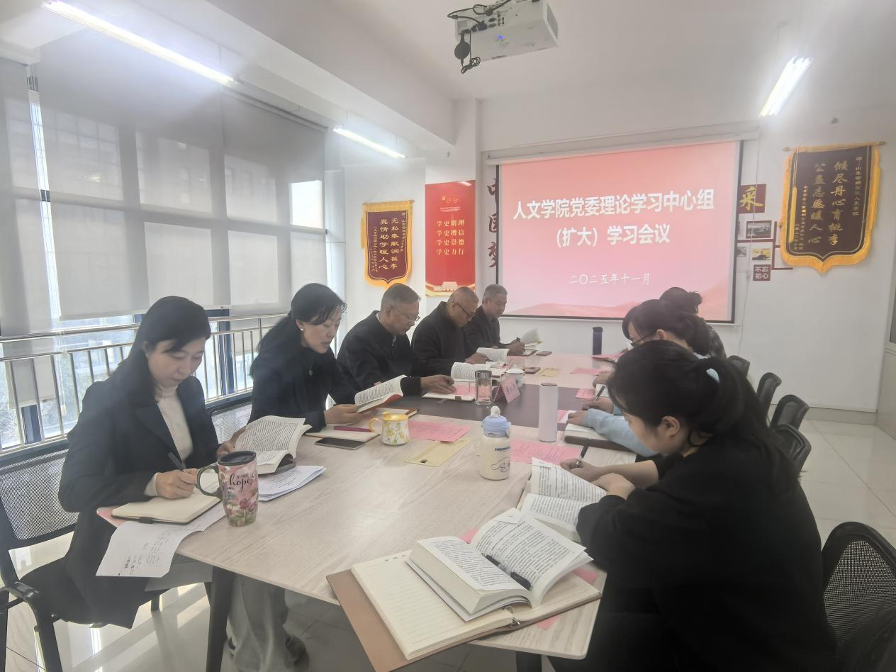 人文学院党委理论学习中心组成员、各党支部书记、教师党员代表参加了学习会。