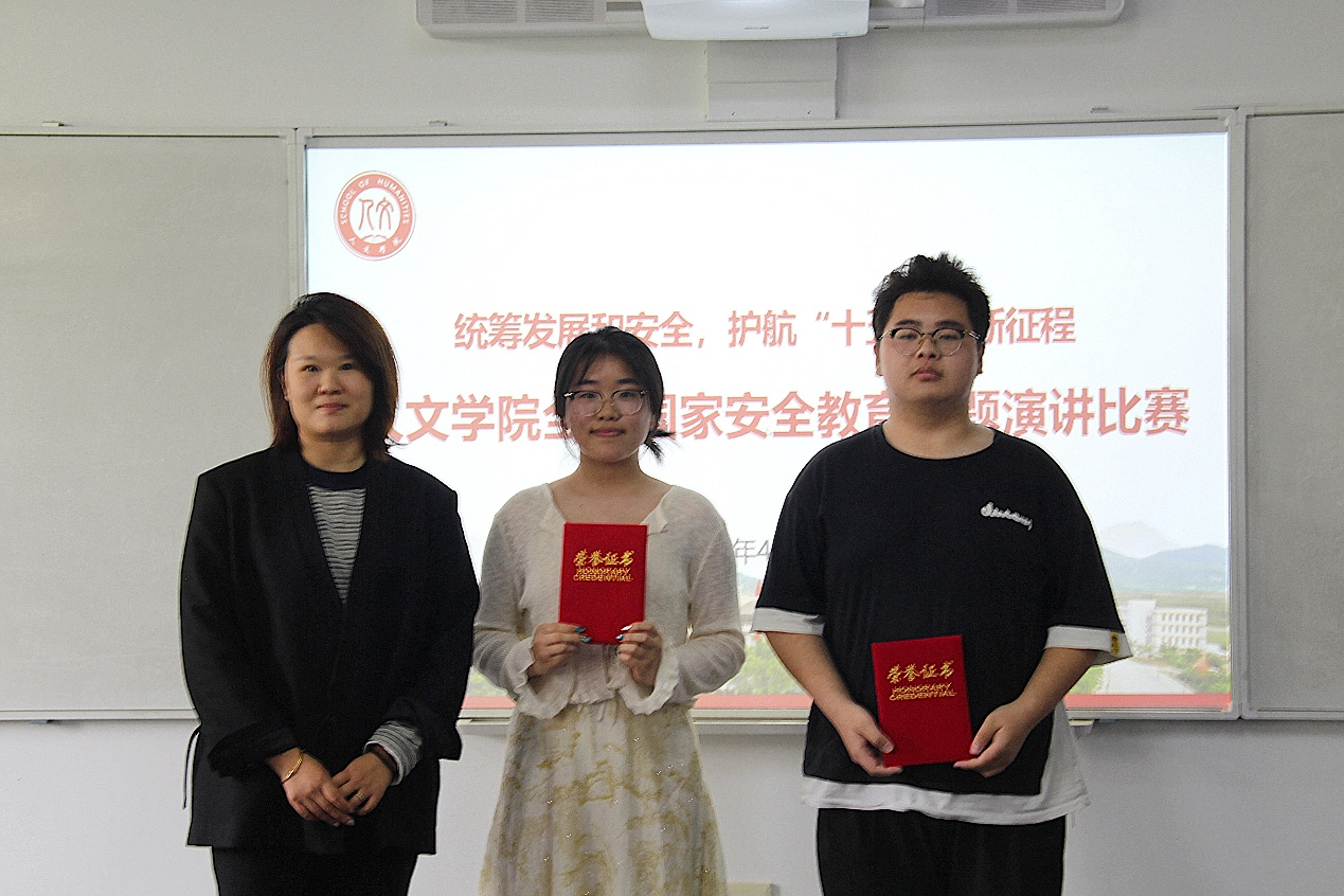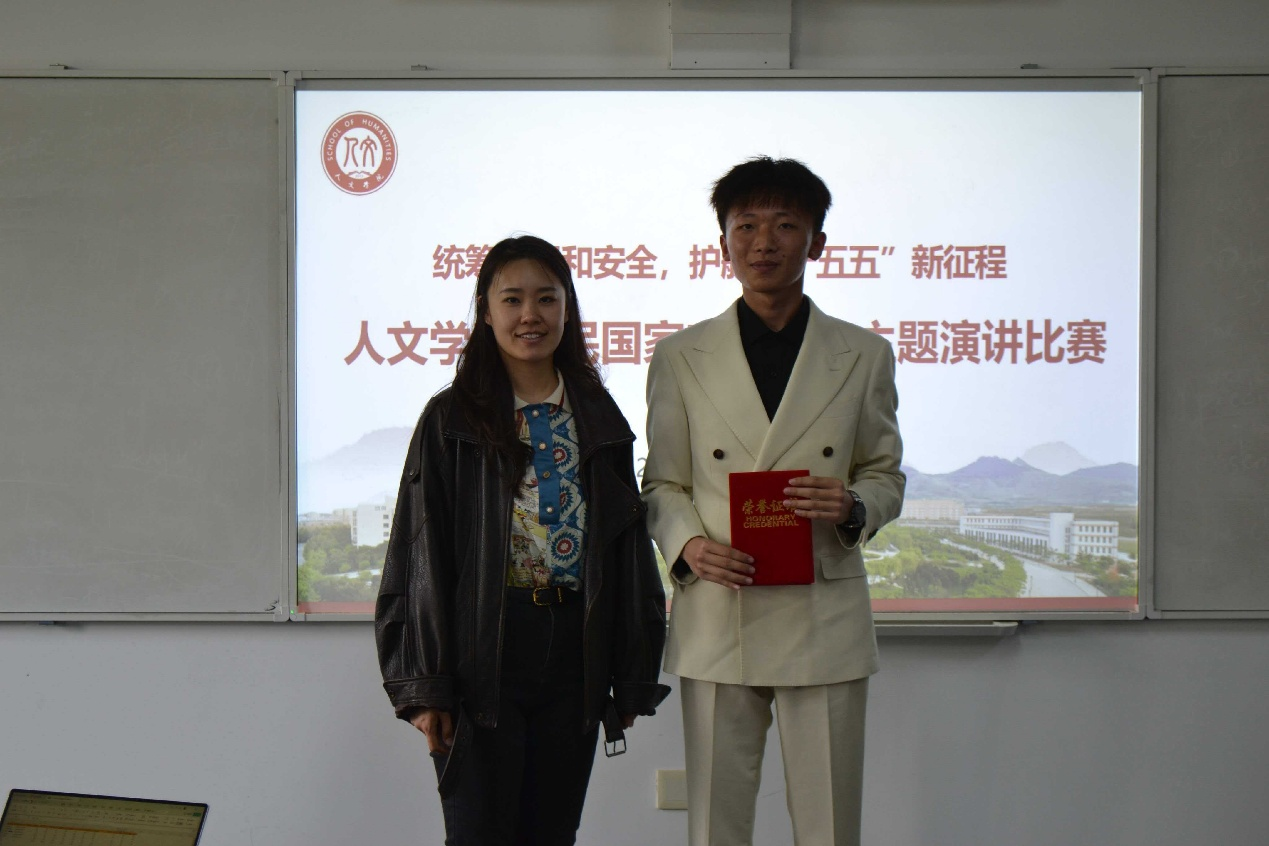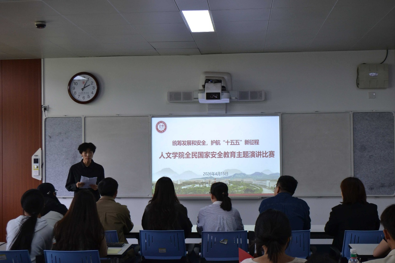 为深入学习贯彻总体国家安全观,增强青年学子国家安全意识,引导广大同学深刻认识国家安全对国家发展、民族复兴的重要意义,4月15日下午,人文学院于明志楼310教室举办“统筹发展和安全,护航‘十五五’新征程”全民国家安全教育主题演讲比赛,以演讲形式激发青年学生维护国家安全的责任感与使命感。