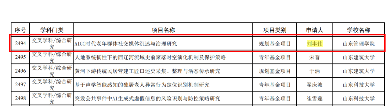 近日,教育部社会科学司正式公示了2025年度教育部人文社会科学研究一般项目评审结果。我院刘丰伟老师主持申报的《AIGC时代老年群体社交媒体沉迷与治理研究》项目,成功获批“规划基金项目”,项目学科类别为“交叉学科/综合研究”。
